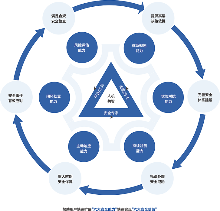 通過能力的擴展,幫助組織實現“六大安全價值”通過海龍科技安全專家和用戶安全團隊的協同合作,快速擴展組織的安全能力,從容應對各種安全挑戰,實現滿足合規安全檢查、提供高層決策依據、完善安全體系建設、抵御外部安全威脅、重大時期安全保障以及安全事件有效應對等六大安全價值!